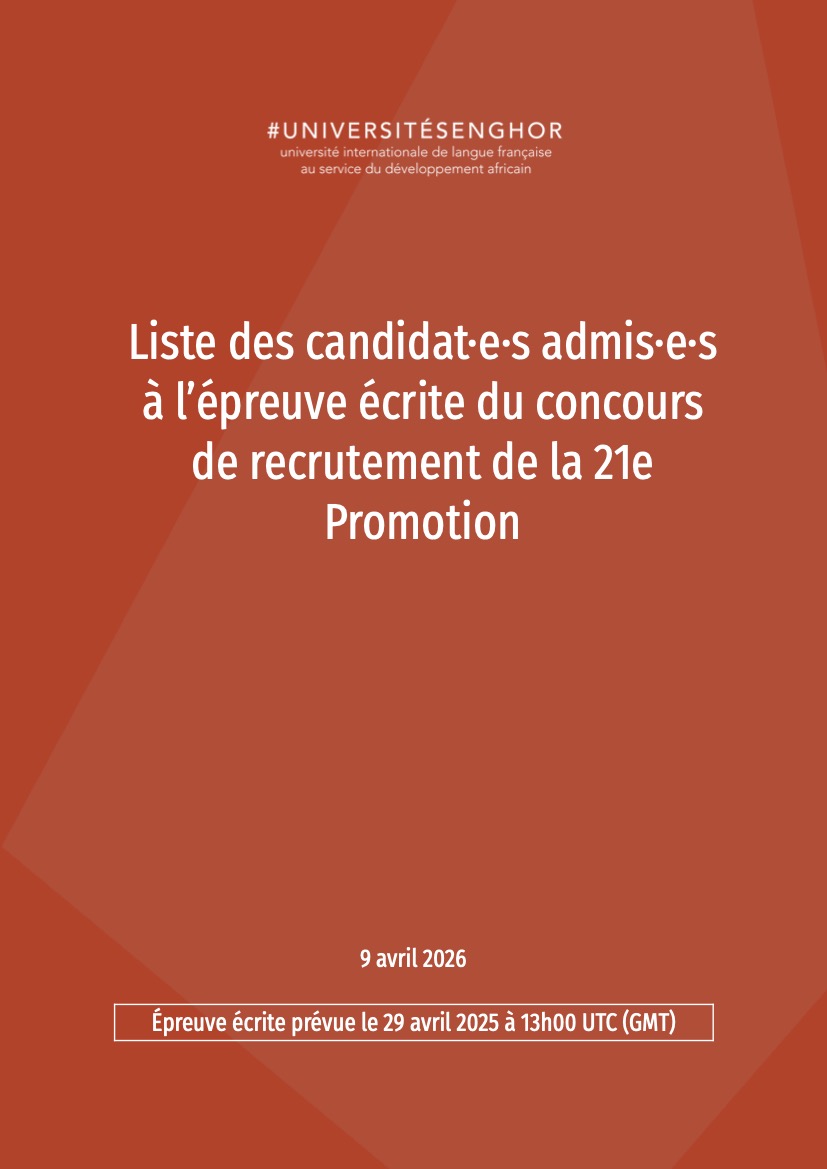 21e promotion Université Senghor : plus de 150 Béninois qualifiés pour l’épreuve écrite du Master