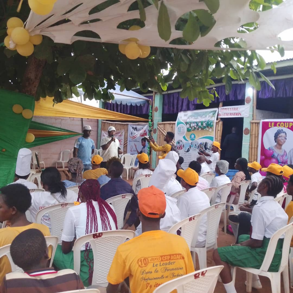 La célébration du 10ᵉ anniversaire du CFP AGAPE a démarré dans une ambiance festive et conviviale. Pour cette première journée, les apprenants et les responsables du centre ont mis les petits plats dans les grands afin de marquer cette étape importante de la vie de l’établissement. Au programme des festivités figuraient des prestations artistiques et culturelles, des défilés des apprenants en tenue professionnelle ainsi que la présentation des différentes filières de formation du centre. Ces moments ont permis au public et aux invités de découvrir le savoir-faire des étudiants formés dans divers domaines techniques et professionnels.