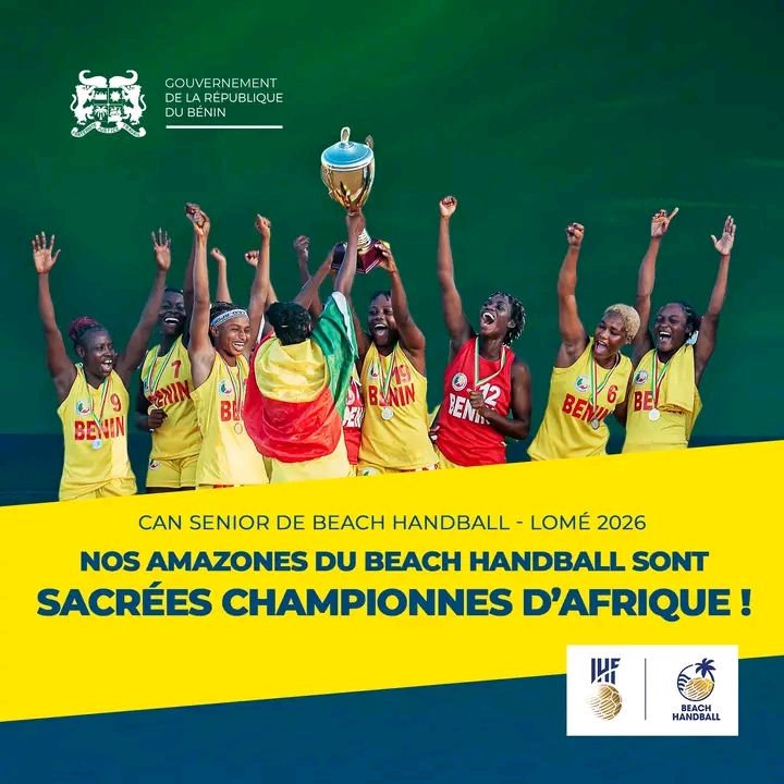 Le sport béninois vient d’inscrire une nouvelle page dorée de son histoire. À Lomé, les Amazones du beach handball ont réalisé un exploit retentissant en décrochant le titre continental lors de la CAN de Beach Handball 2026. Une consécration saluée avec fierté par le Gouvernement, qui parle d’une victoire « historique et méritée ».